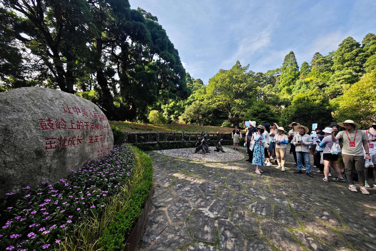 24日,中美青年参观福建福州鼓岭柳杉王公园。中新社