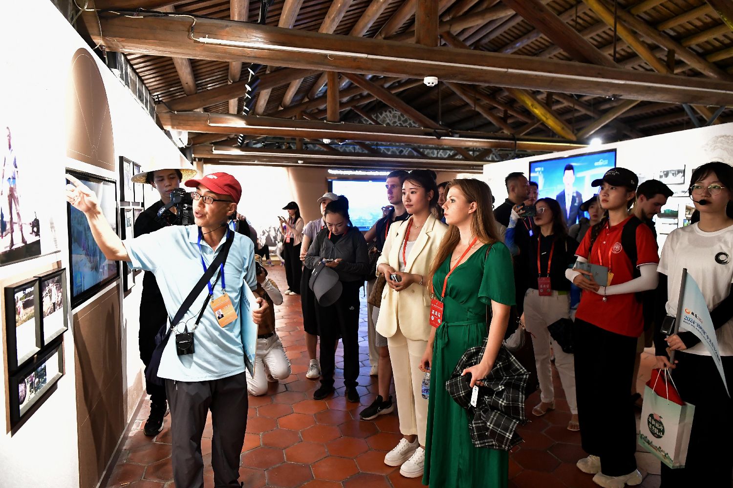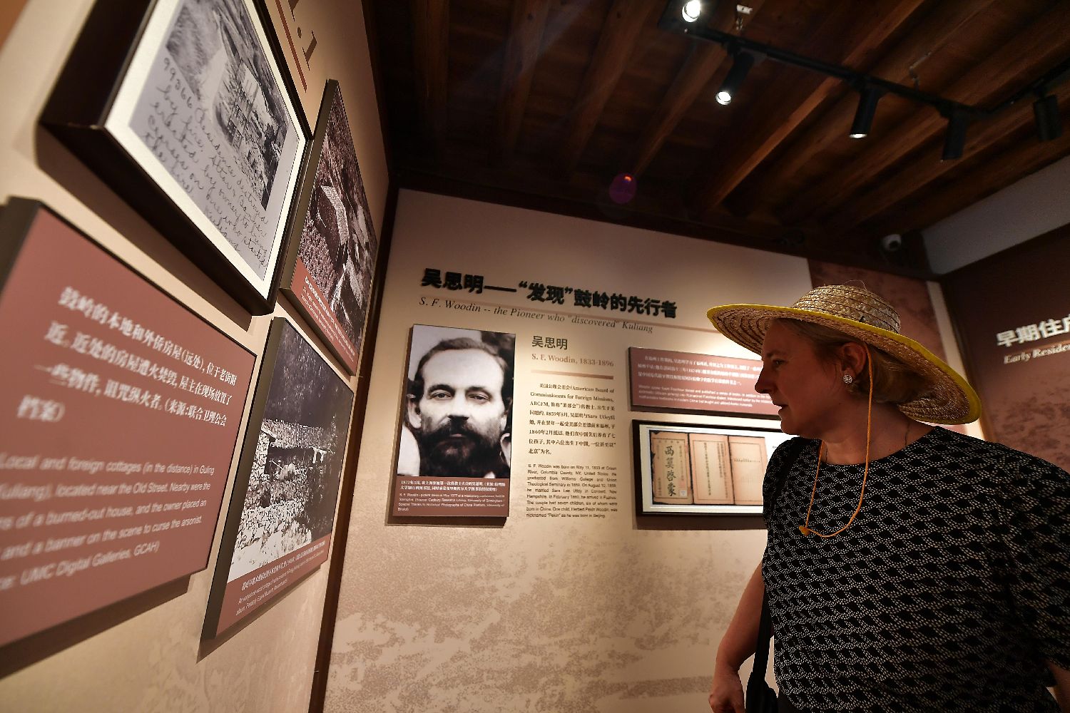 24日,中美青年在福建福州鼓岭参观,了解福州“鼓岭故事”。图为参加活动的嘉宾在鼓岭历史建筑展示馆参观。中新社