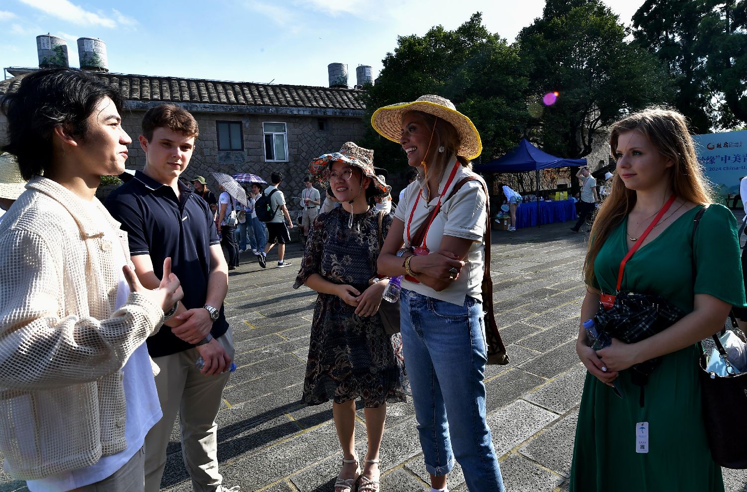 24日,参加活动的嘉宾及中美青年在鼓岭交流。中新社