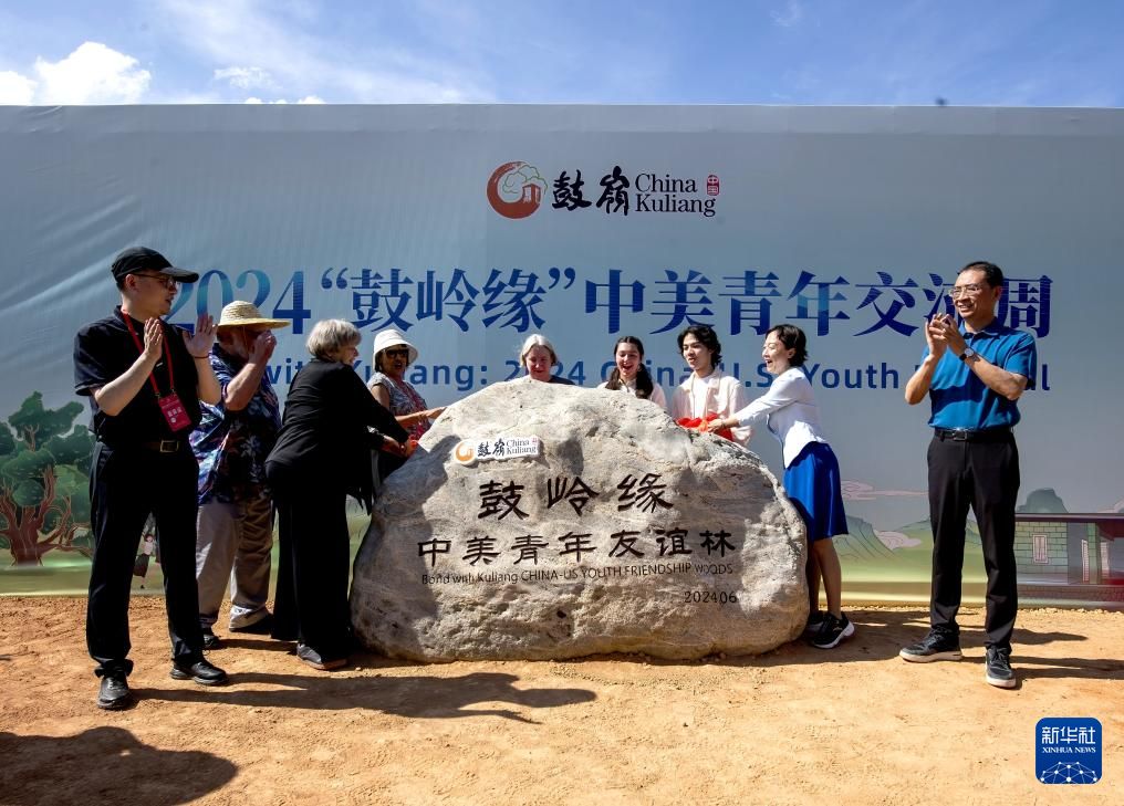 24日,参加2024“鼓岭缘”中美青年交流周的中美各界人士在鼓岭共同为“鼓岭缘”中美青年友谊林纪念石碑揭幕。新华社