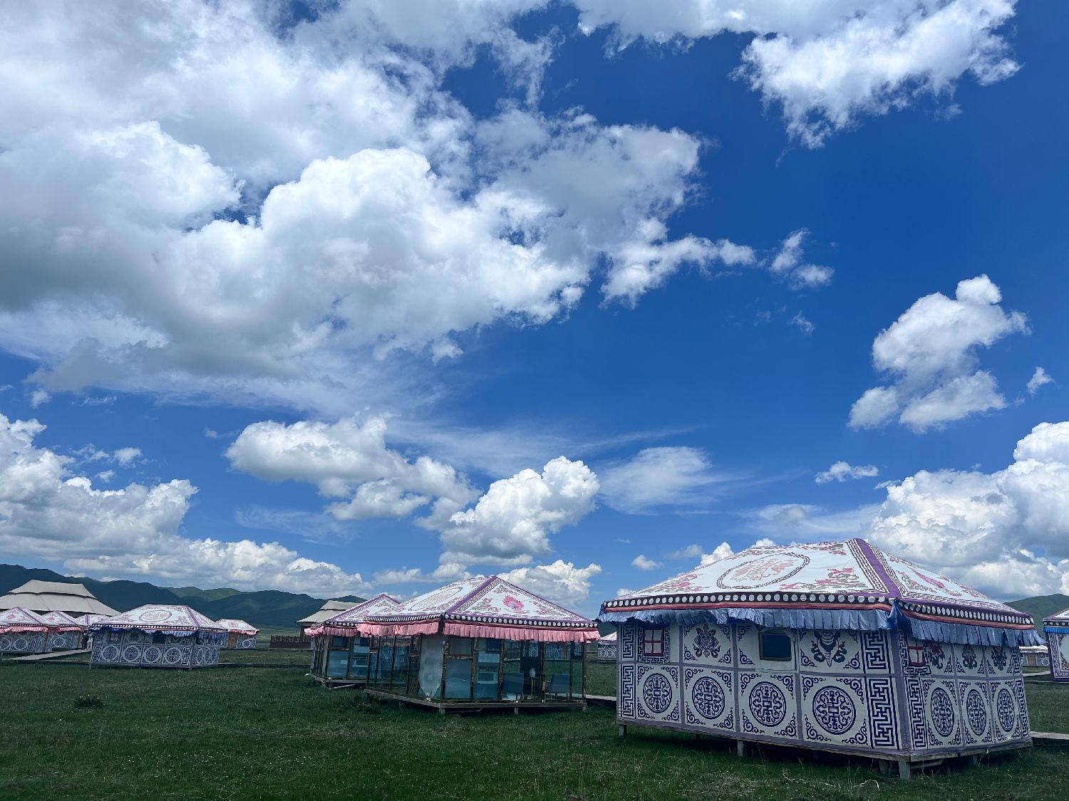 6月26日,参加海外华文媒体甘南行活动的代表们走进甘肃甘南藏族自治州碌曲县尕海镇。帐篷城是碌曲县旅游业的重要组成部分,其呈现的正宗藏族特色吸引了大量游客前往体验。帐篷城由108顶大小各异的藏式风格帐篷组成,从空中俯瞰,108顶帐篷组成了藏族吉祥八宝图中的莲花图案。图为尕海镇尕秀村帐篷城。门凌霄摄
