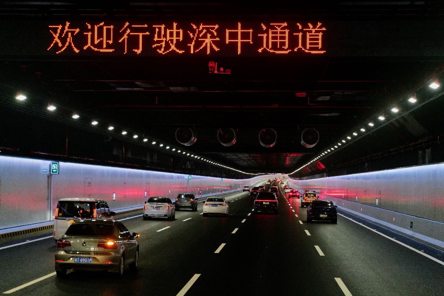 开通首日的深中通道海底沉管隧道内的车流。新华社