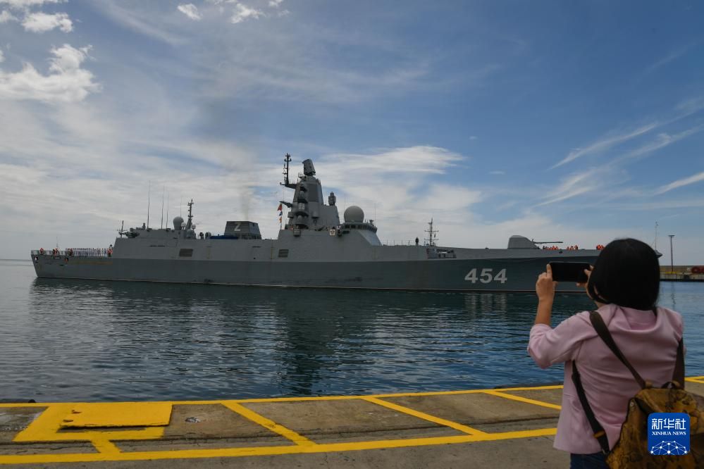 7月2日,俄罗斯北方舰队的一支舰艇编队抵达委内瑞拉北部拉瓜伊拉港,委方为其举行了欢迎仪式。该编队计划在该港口停泊至6日。据悉,这支舰艇编队由“戈尔什科夫海军元帅”号护卫舰、“帕申”号补给舰等组成。图为当日在委内瑞拉北部拉瓜伊拉港拍摄的俄北方舰队“戈尔什科夫海军元帅”号护卫舰。