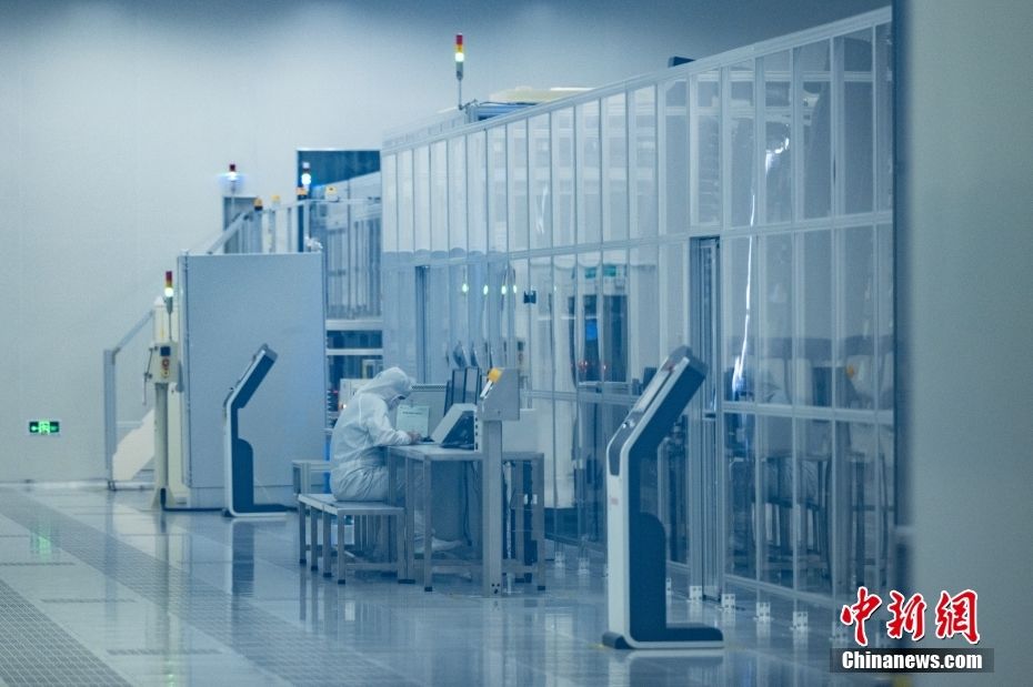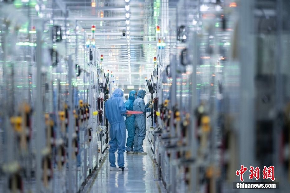 蚌埠中光电有限公司里的8.5代TFT-LCD浮法玻璃基板生产线的工作人员。