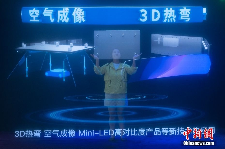参观人员在蚌埠国显科技有限公司体验空气成像产品。