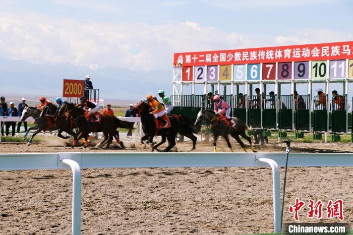 民族马术项目民族赛马2000米比赛开跑瞬间。中新网