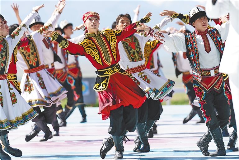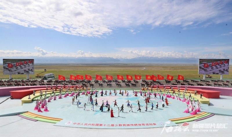7月8日,中国第十二届全国少数民族传统体育运动会马上项目在新疆伊犁哈萨克自治州昭苏县天马旅游文化园开幕,来自中国各地的12支代表队展开激烈角逐,场面精彩纷呈。竞赛项目分民族赛马、跑马射箭、跑马拾哈达、个人两项全能4项,表演项目分竞技类、技巧类、综合类三类。参赛运动员229人,参赛马匹276匹,骆驼16峰。参赛运动队数量为历届运动会之最。据悉,中国第十二届全国少数民族传统体育运动会11月在海南三亚举办,其中马上项目在新疆昭苏举办,至7月13日结束。图为开幕式现场。《新疆日报》