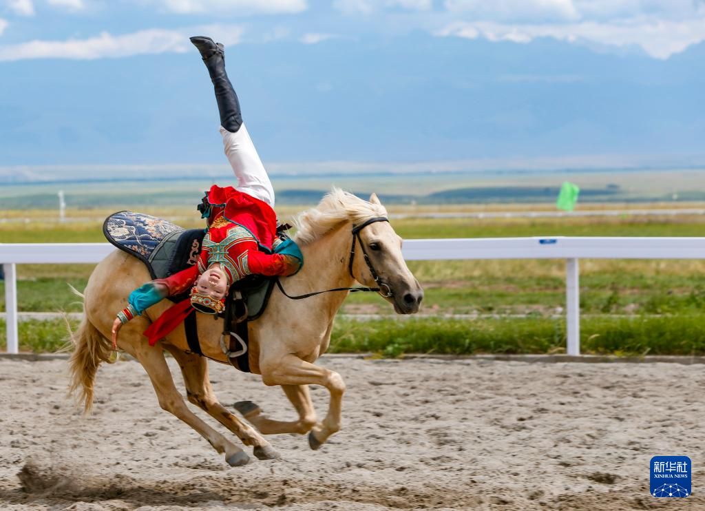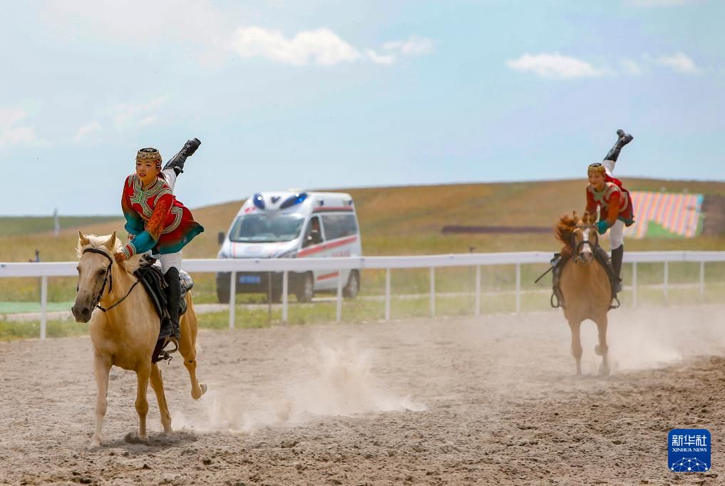 内蒙古代表团运动员参加表演项目技巧类马上技巧比赛。新华社