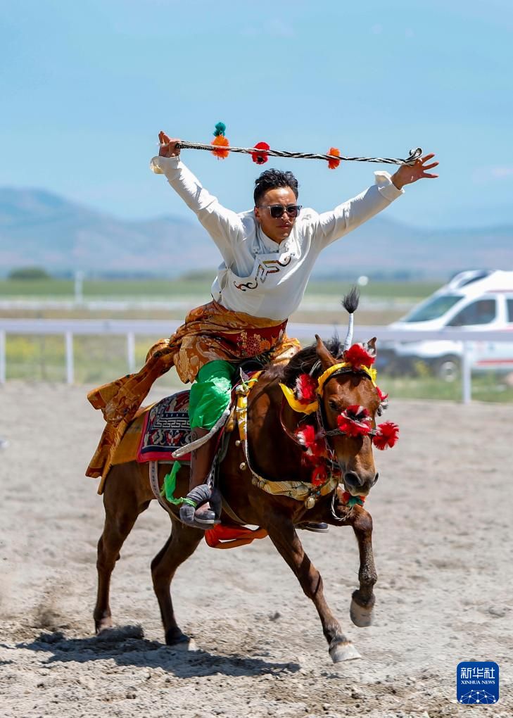 青海代表团运动员参加表演项目技巧类乘马抛石比赛。新华社