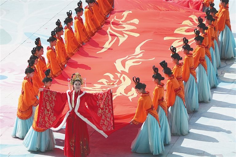 开赛仪式上的歌舞表演。《海南日报》