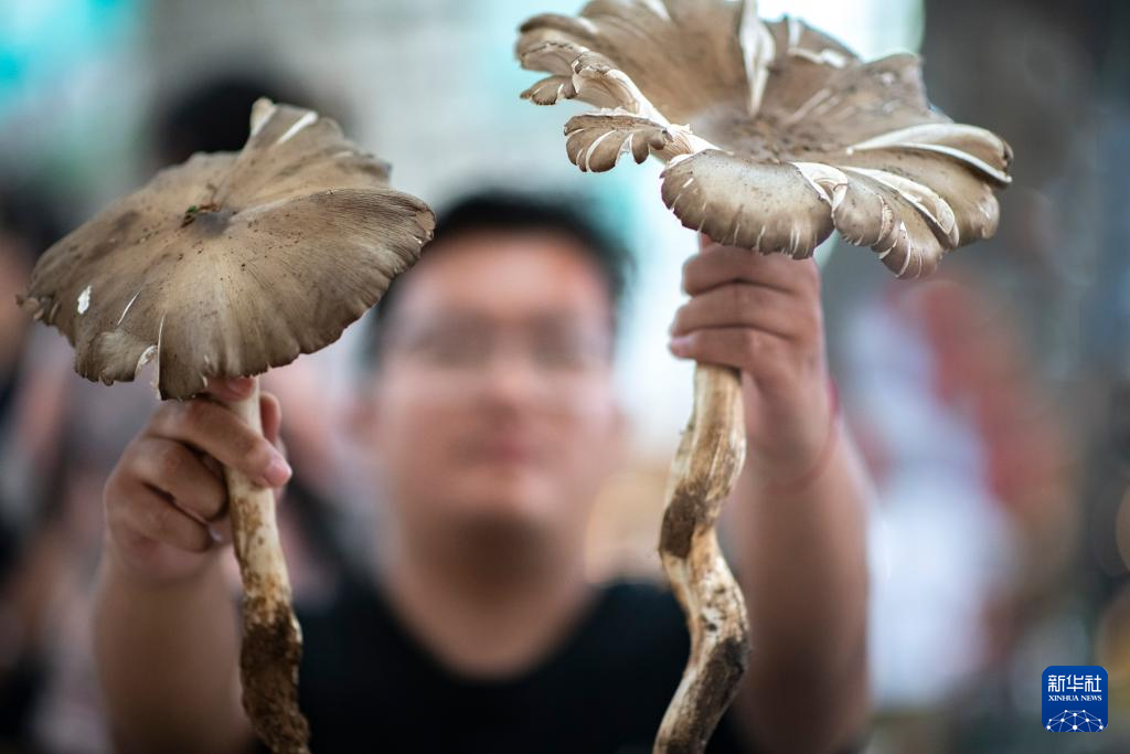 丰富的野生食用菌资源,也催生了云南野生食用菌产业链的延伸,干制品、罐头、即食产品极大程度突破了季节的限制,让云南以外的消费者也能及时品尝到大自然的馈赠。图为6月30日,市民在云南省文山壮族苗族自治州文山市西华菌子市场选购鸡枞野生菌。