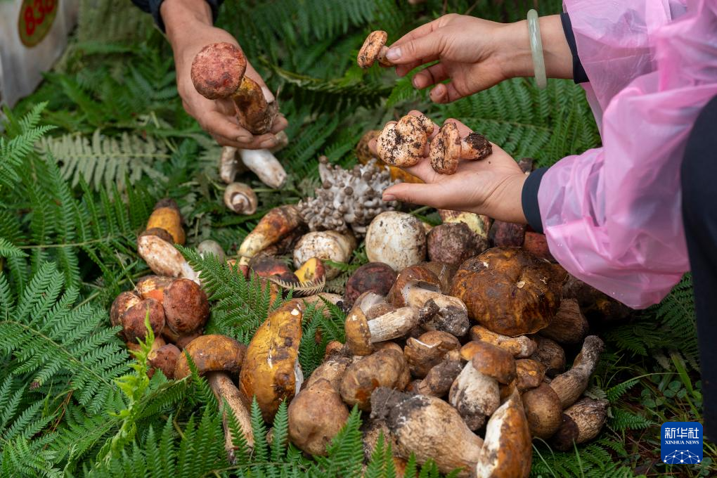 6月30日,云南省大理白族自治州洱源县三营镇士登村村民挑选牛肝菌。