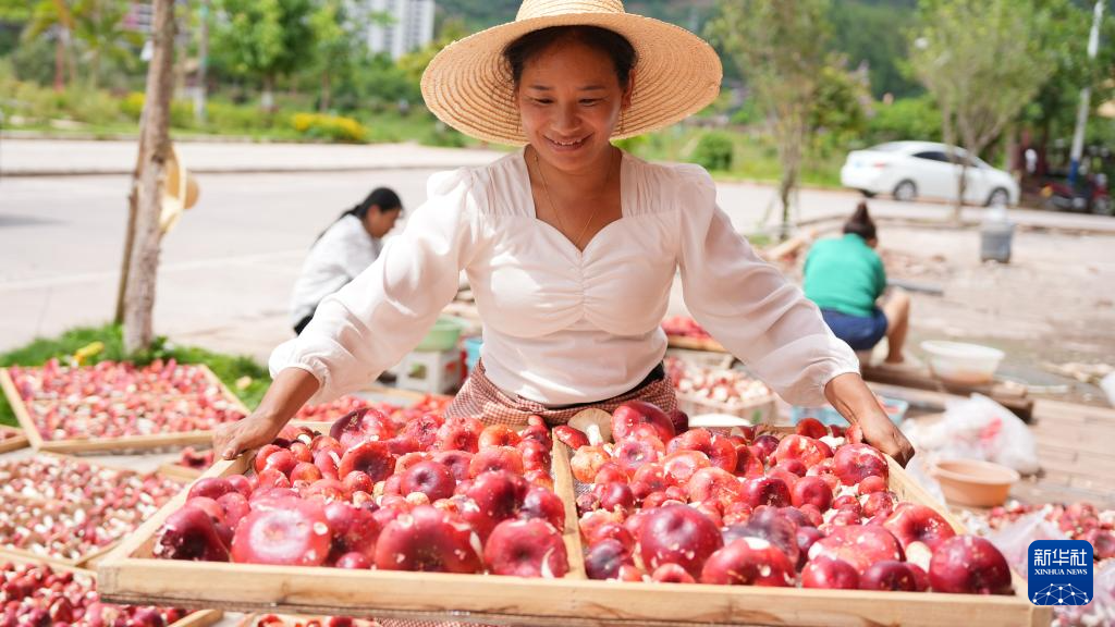 7月2日,在云南省普洱市镇沅彝族哈尼族拉祜族自治县恩乐镇一家野生菌收购合作社,工人们忙着将野生红菌清洗干净晾晒。