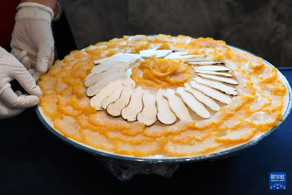 6月26日,工作人员在云南省丽江市松茸交易中心准备松茸拼盘。