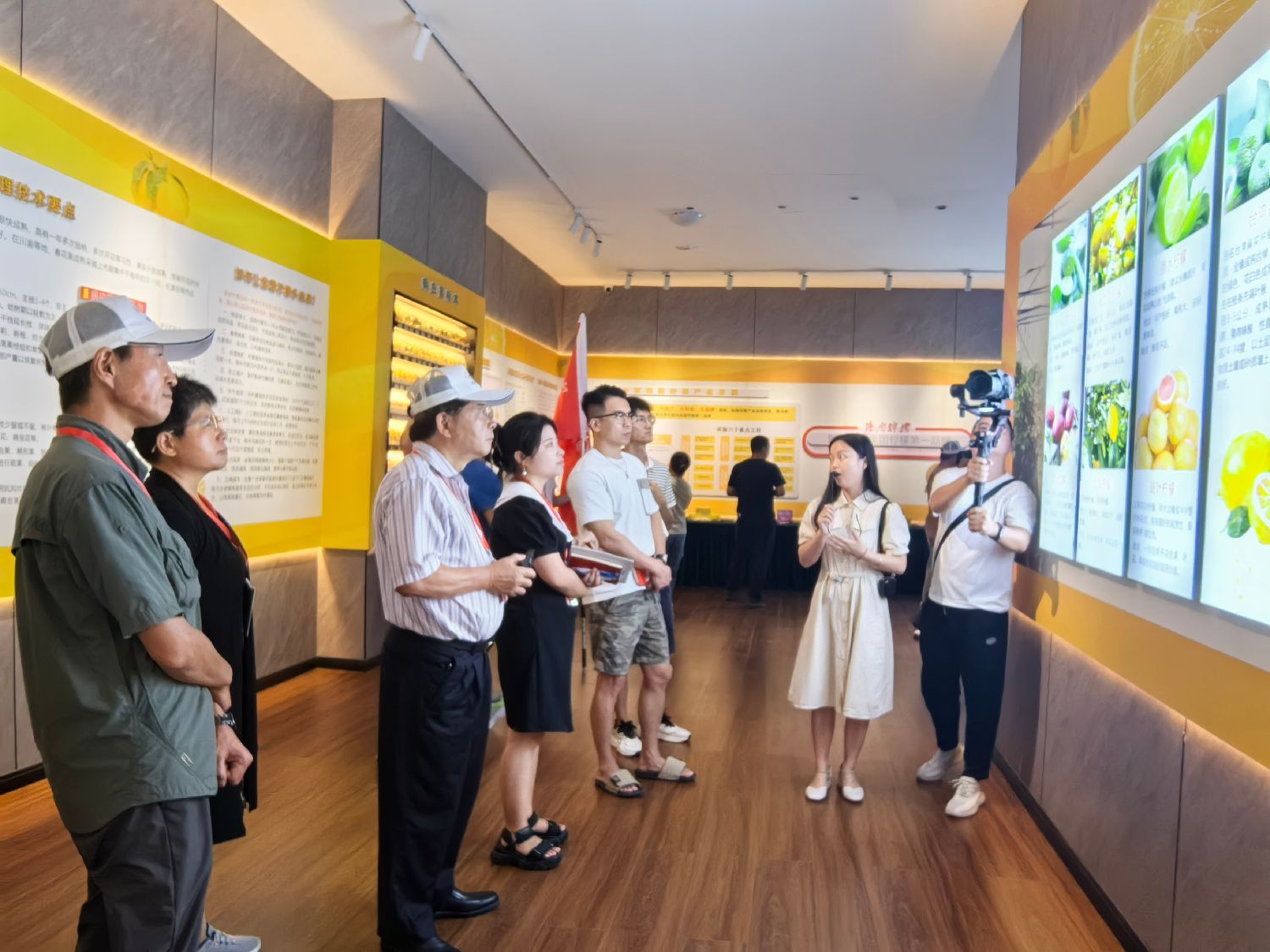 目前,重庆潼南种苗繁育中心每年可提供柠檬(尤力克)无毒优质种苗60万株,并引进澳洲血檬、手指柠檬、四季柠檬、斑叶柠檬等15个新品种,进行筛选培育、试验示范,为柠檬产业提供柠檬品种和技术储备。图为华文媒体代表聆听讲解员介绍柠檬品种。肖怡然摄