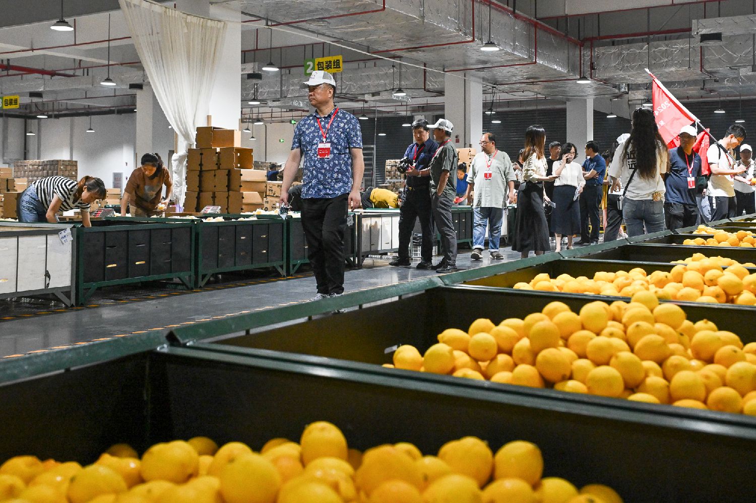 雪王农业(重庆)有限公司是潼南区引进的鲜果收储、分拣及加工龙头企业,是蜜雪冰城全资子公司,借助潼南区柠檬产业优势向海内外门店供货。图为华文媒体代表参观雪王农业(重庆)有限公司,了解柠檬鲜果筛选流程。肖怡然摄