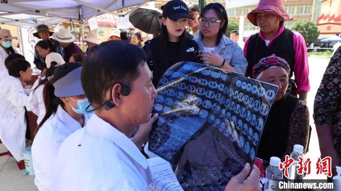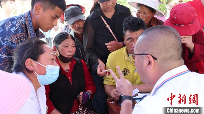 7月8日,医疗专家在巴塘县中山广场为民众义诊。中新网