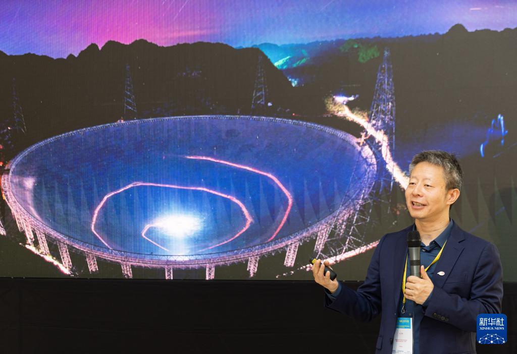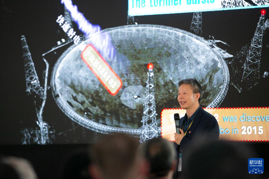 第十七届马塞尔·格罗斯曼会议于7日至12日在意大利东部城市佩斯卡拉举办。当地时间9日,“中国天眼”首席科学家李菂获颁马塞尔·格罗斯曼奖个人奖。李菂是首位凭借在中国国内取得的学术成果获得该奖的科学家。图为7月9日,在意大利佩斯卡拉,会议主办方之一、国际相对论天体物理中心网络主任雷莫·鲁菲尼(左)为李菂颁奖。