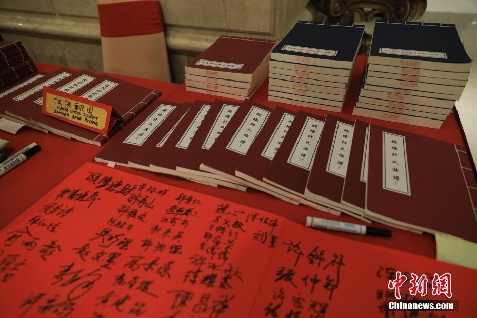 嘉宾参观“根脉寻踪”族谱展。中新社