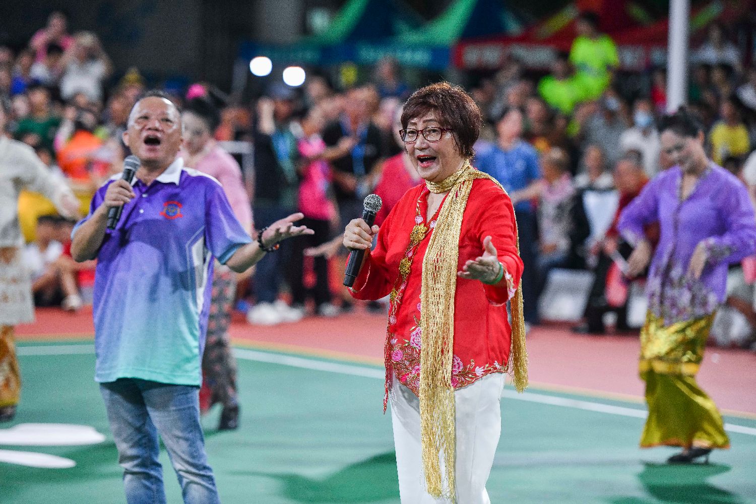 7月13日,马来西亚海南总商会总会长林秋雅(右)演唱歌曲《乡音代代传》。中新社