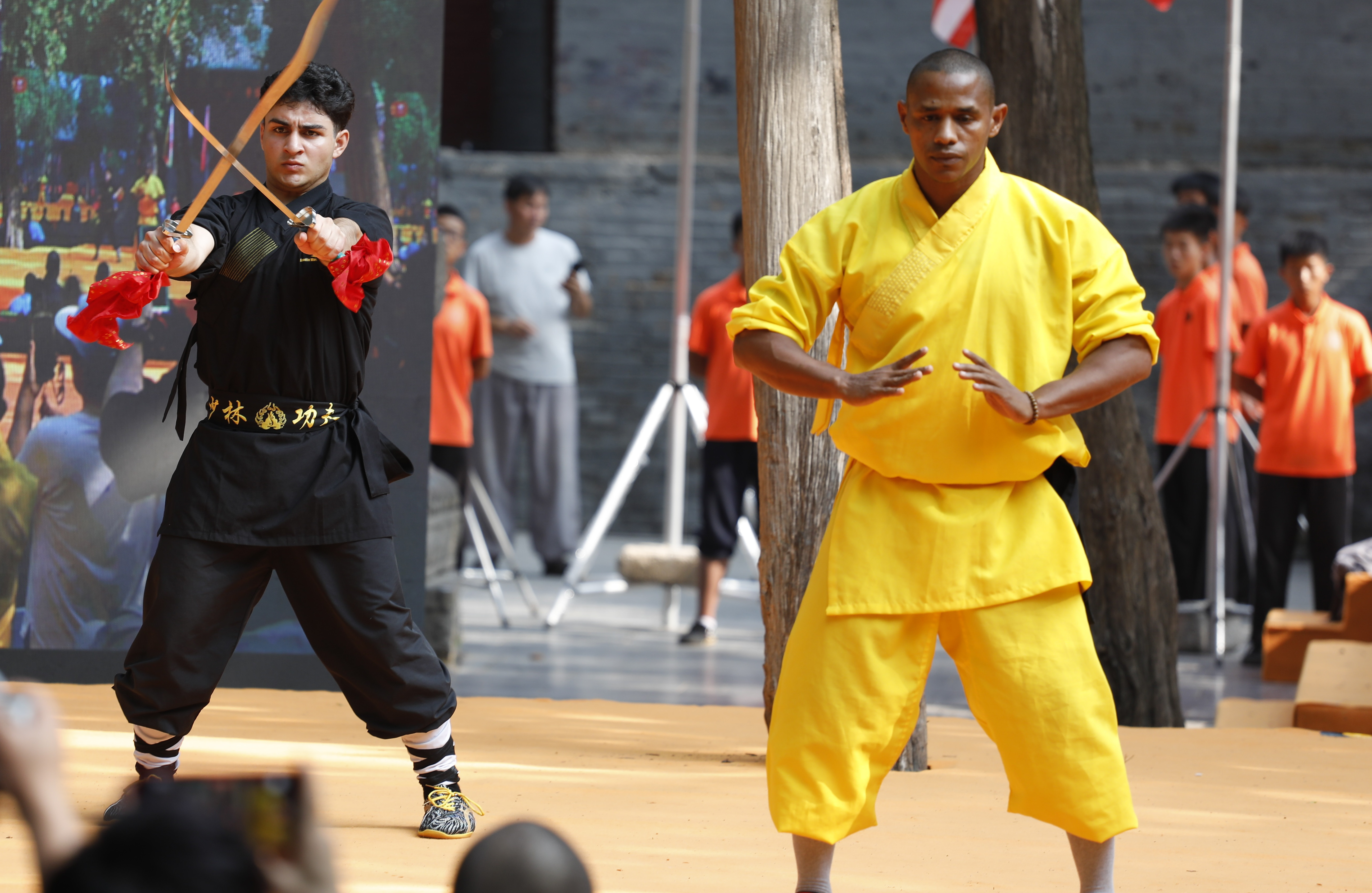 少林“洋弟子”在热身备赛。中新网