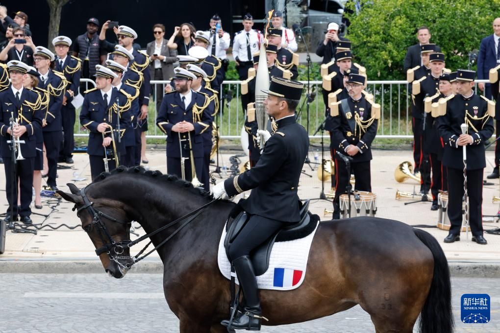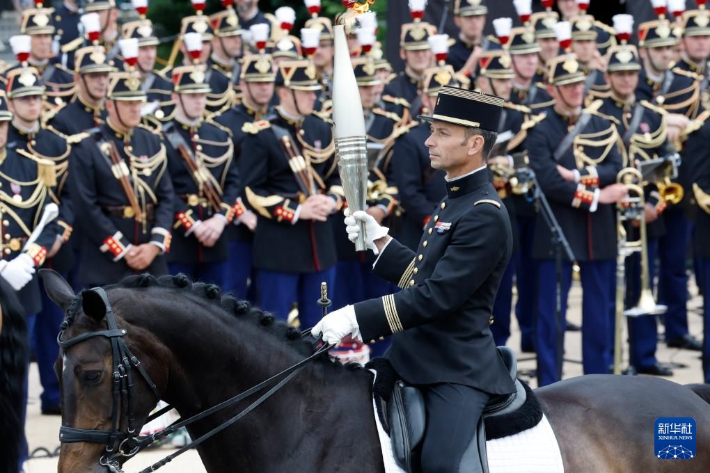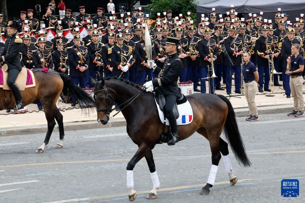 7月14日,在巴黎举行的法国国庆阅兵仪式上,瓦莱特展示奥运火炬。新华社