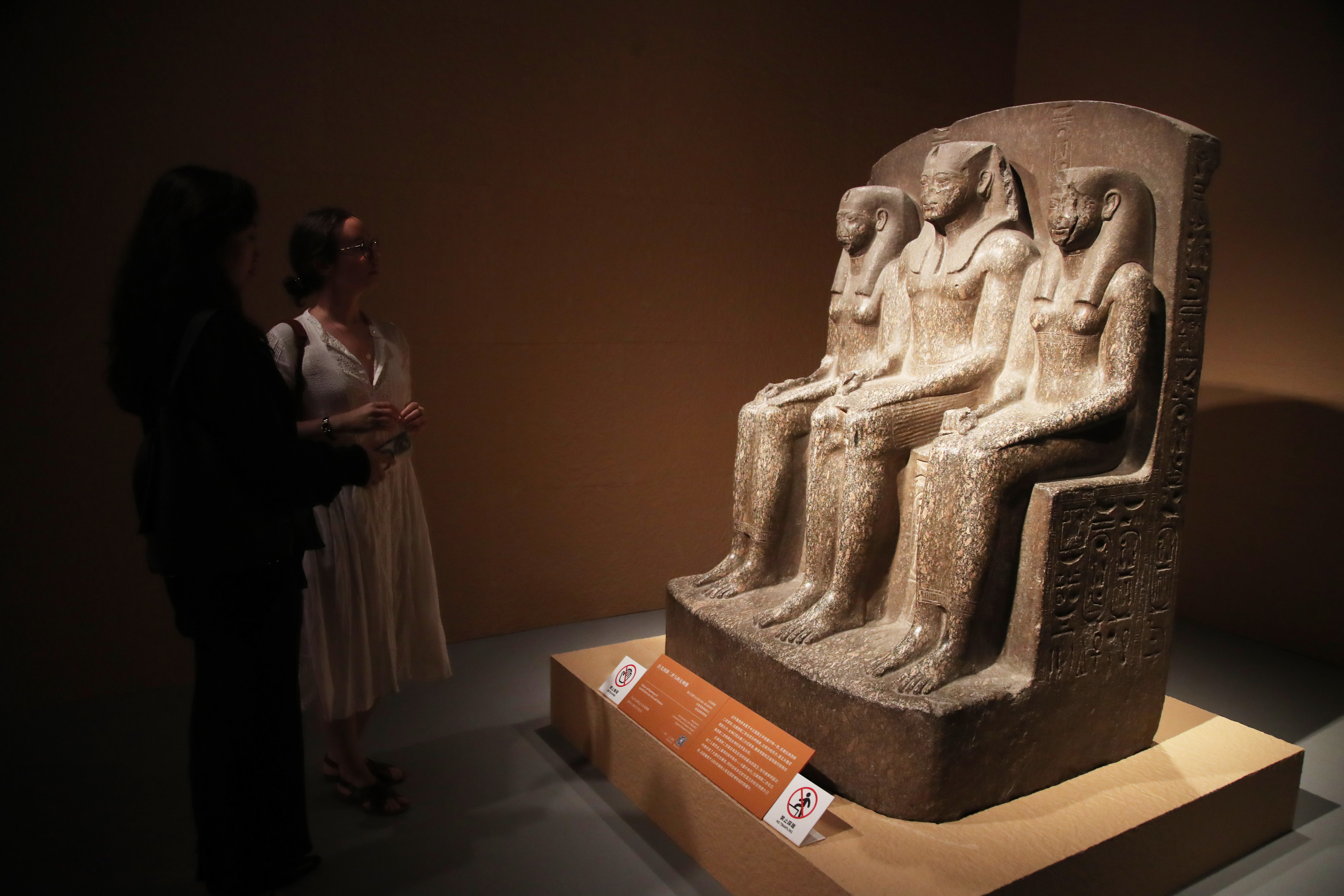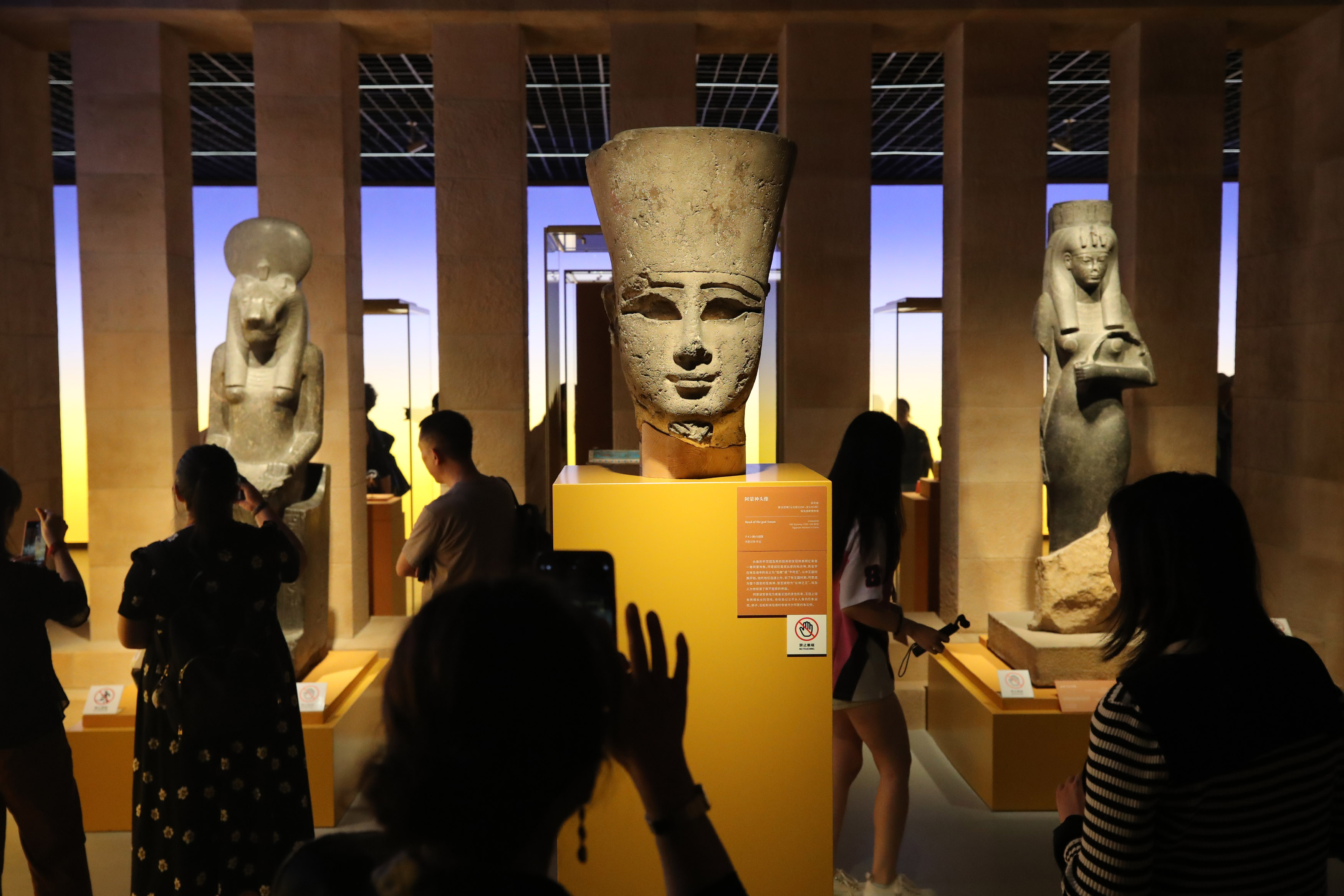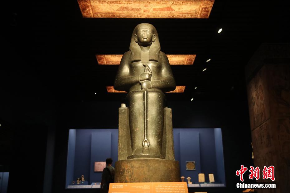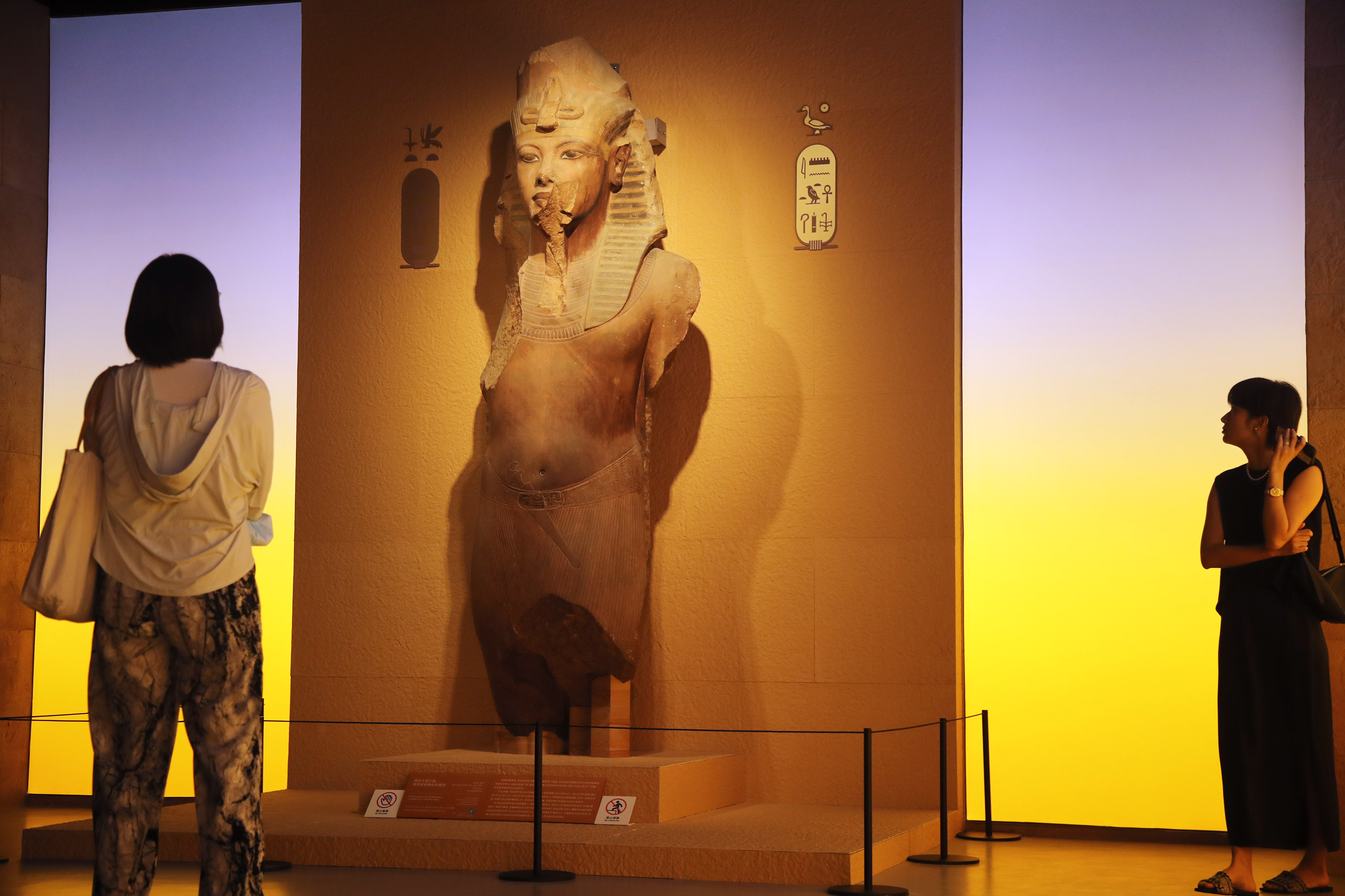 “法老的国度”展区展示的舍本索普度特塑像(7月16日摄)。新华社