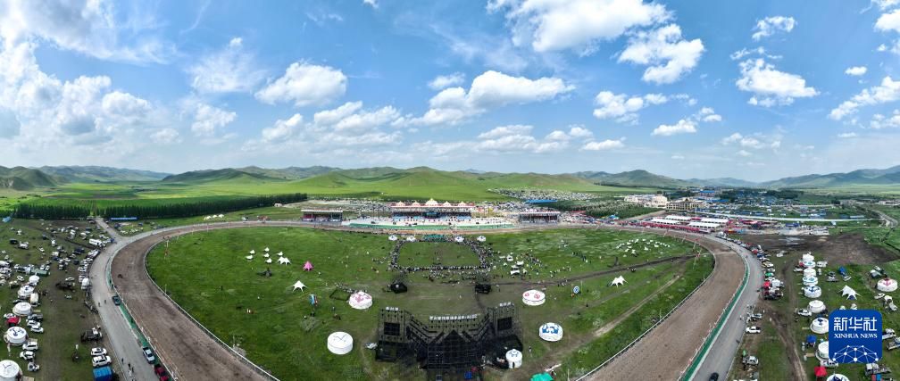 7月17日,2024兴安盟那达慕季在内蒙古兴安盟科尔沁右翼前旗乌兰毛都苏木民族体育综合训练基地启动。本届那达慕季将持续至8月18日,其间,将有国际驯马大赛、中蒙蒙古象棋比赛、草原狂欢夜、那达慕市集、草原百口大锅流水宴等丰富多彩的活动,吸引游客前来体验游玩。图为7月17日在乌兰毛都苏木民族体育综合训练基地拍摄的活动现场(无人机照片)。新华社
