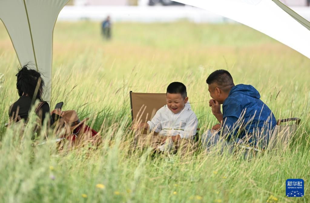 7月17日,游客在乌兰毛都苏木民族体育综合训练基地休憩。新华社