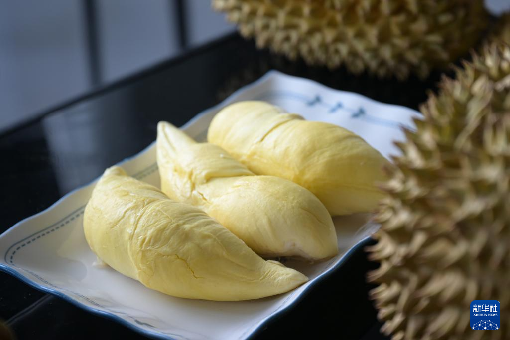 7月20日在三亚市优旗大嘴鸟榴莲园一号基地拍摄的国产榴莲果肉。新华社
