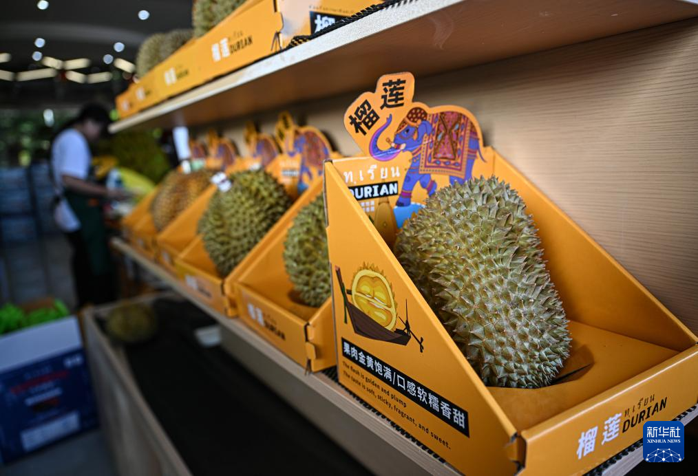 7月19日在三亚市一家水果店拍摄的待售的国产榴莲。新华社