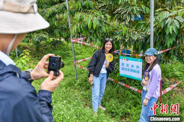 7月21日,嘉宾在三亚市育才生态区的优旗大嘴鸟榴莲一号基地参观并拍照留影。中新网