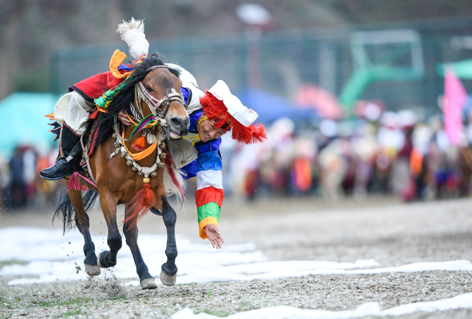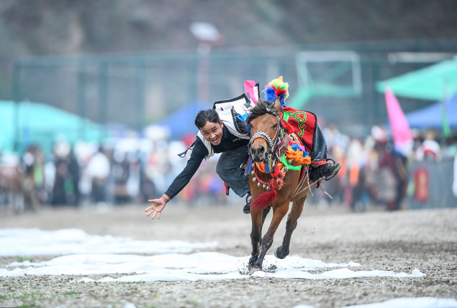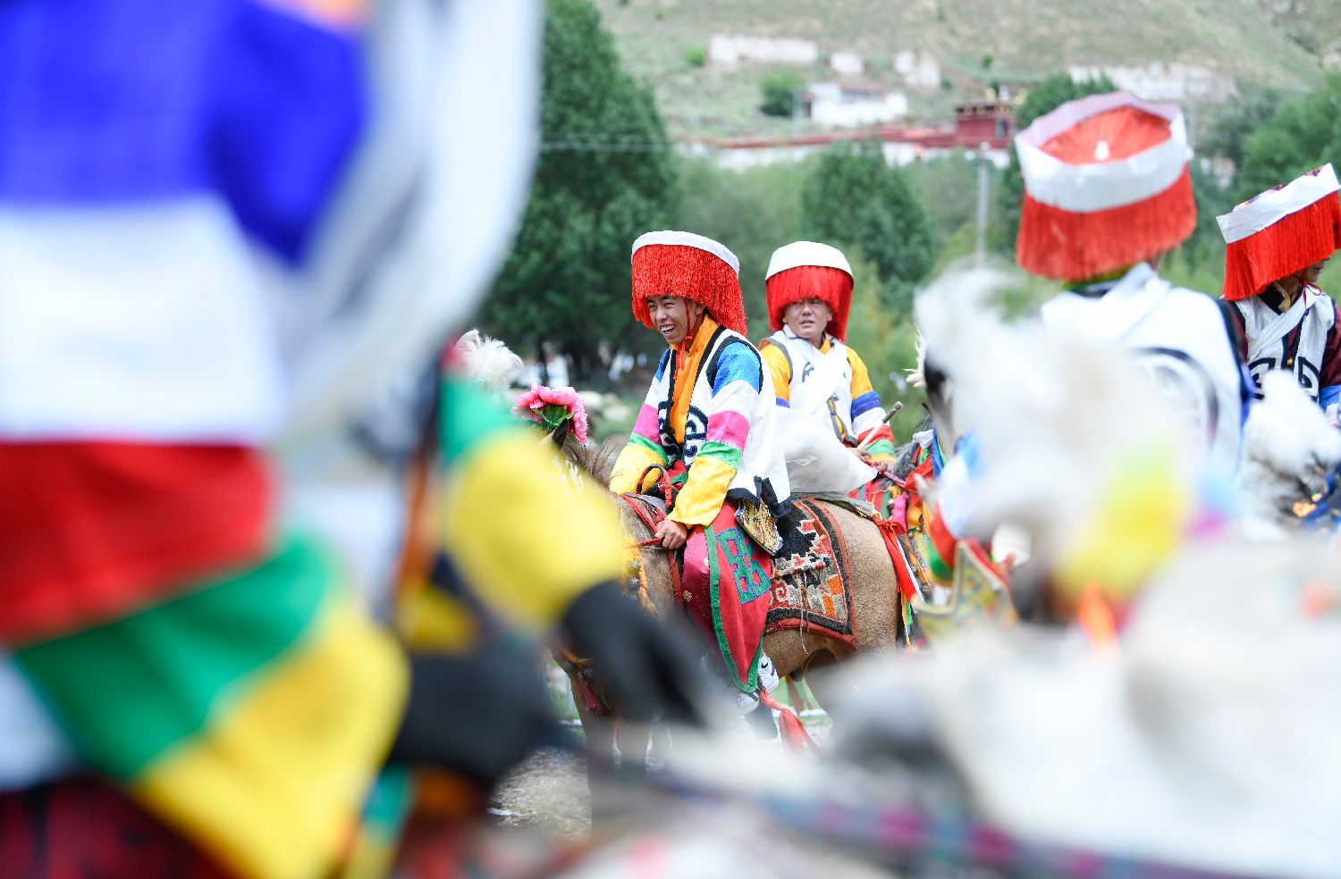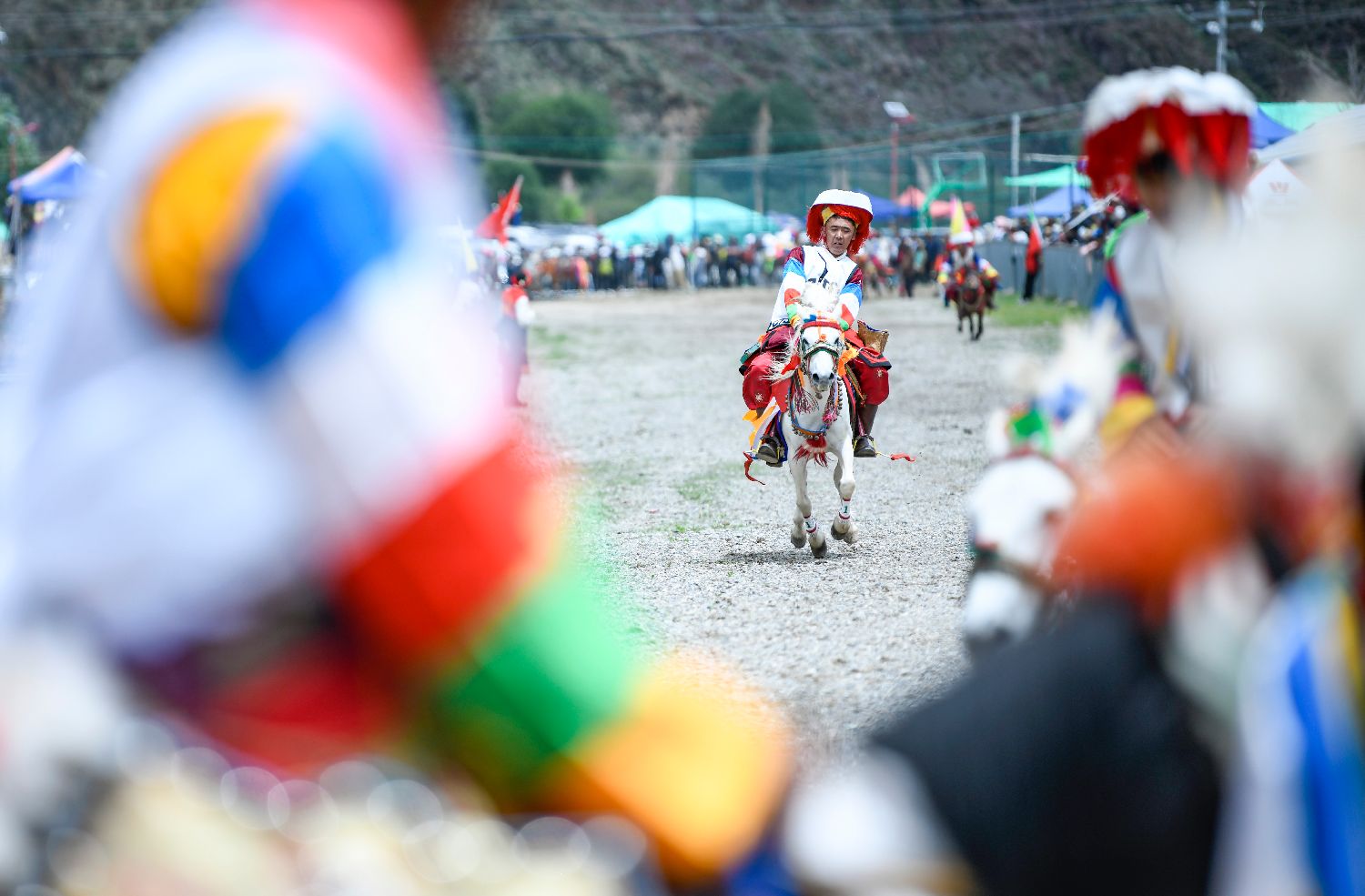 7月21日,西藏自治区拉萨市堆龙德庆区马镇朗巴村民众赛马欢度“望果节”。“望果节”民俗已有1500多年的历史,是中国国家级非物质文化遗产。藏语“望”意为“田地”,“果”为“转圆圈”,望果节即围绕田野歌舞庆祝丰收。图为骑手在比赛中。中新社