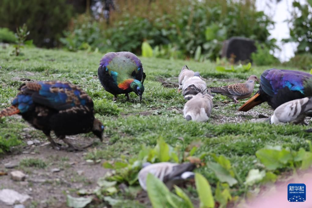 7月23日,在西藏洛扎县拉康镇,记者遇到喜马拉雅斑羚和棕尾虹雉两种珍稀野生动物带领亚成体或幼崽觅食。据当地林业部门介绍, 这意味着它们的家族正在不断扩大。近年来,随着当地生态保护力度加大和民众保护意识增强,野生动物保护成效显著。这是当日拍摄的成体雄性棕尾虹雉。