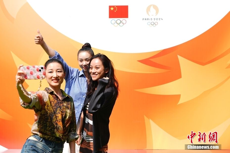 工作人员在巴黎奥运会“中国之家”合影留念。中新网