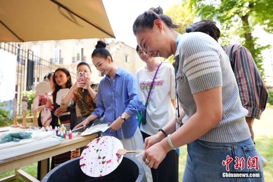 参观者在巴黎奥运会“中国之家”体验漆扇制作。中新网