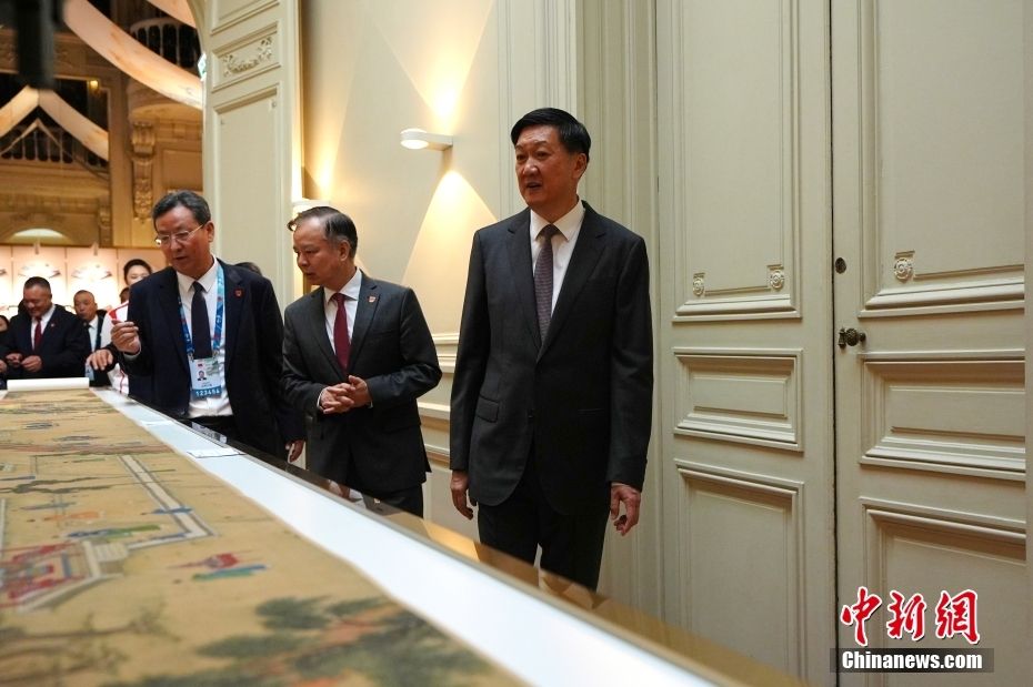 中国国家体育总局局长、中国代表团团长高志丹(右)等嘉宾参观巴黎奥运会“中国之家”。中新网