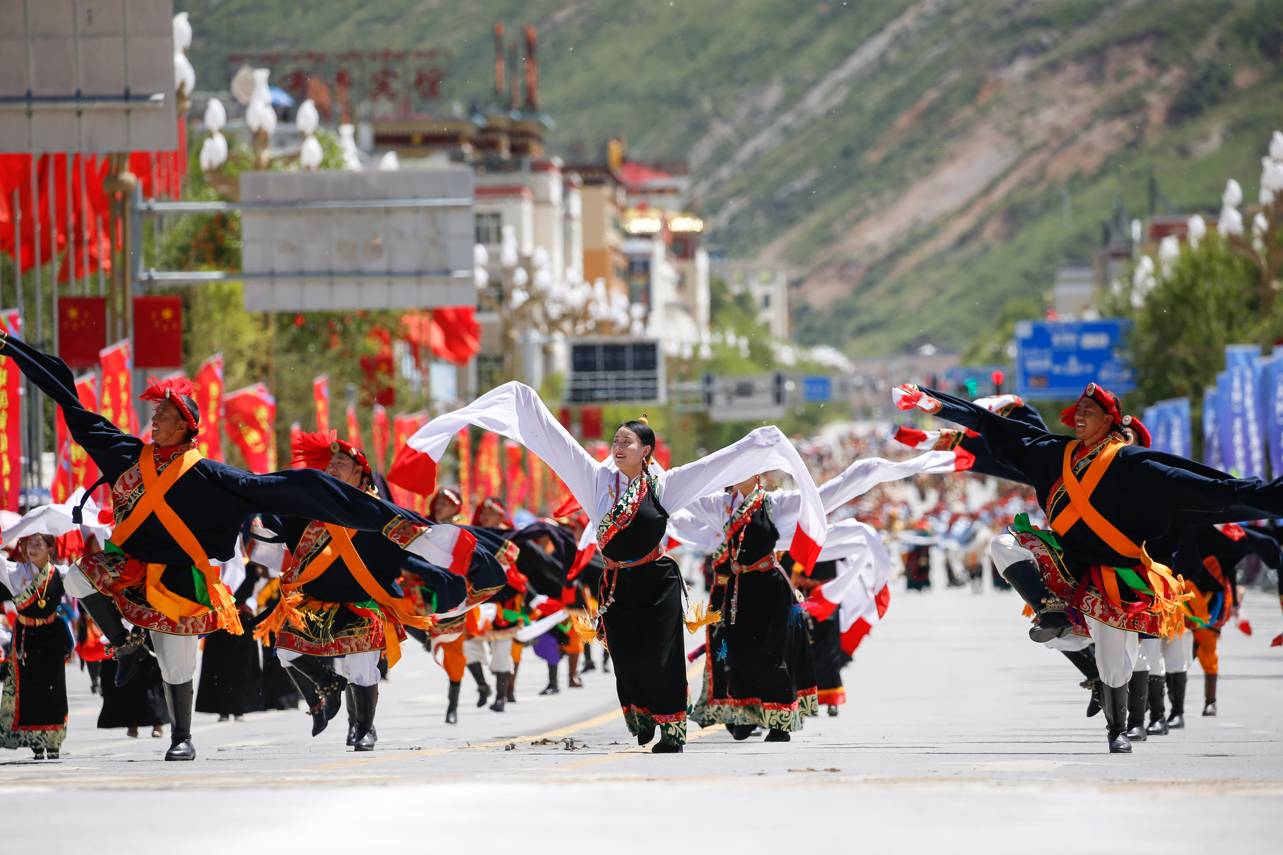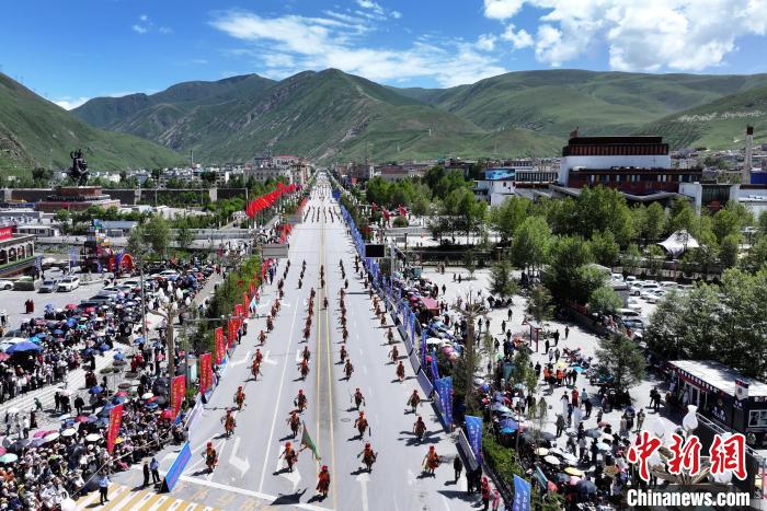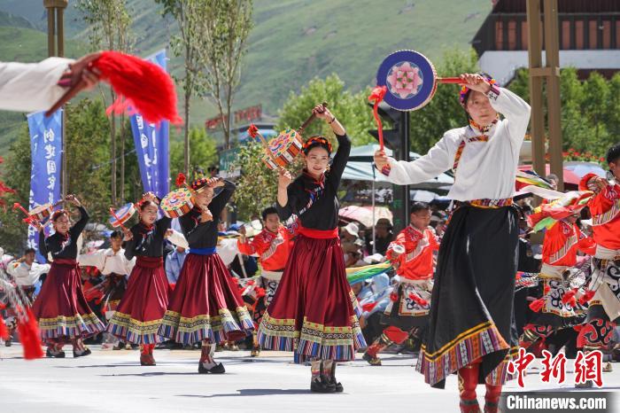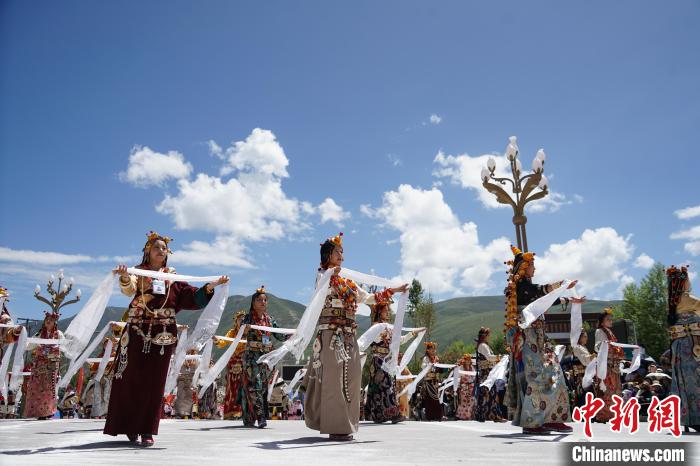 7月24日,航拍“潇洒的康巴人” 玉树非物质文化遗产巡演现场。中新网