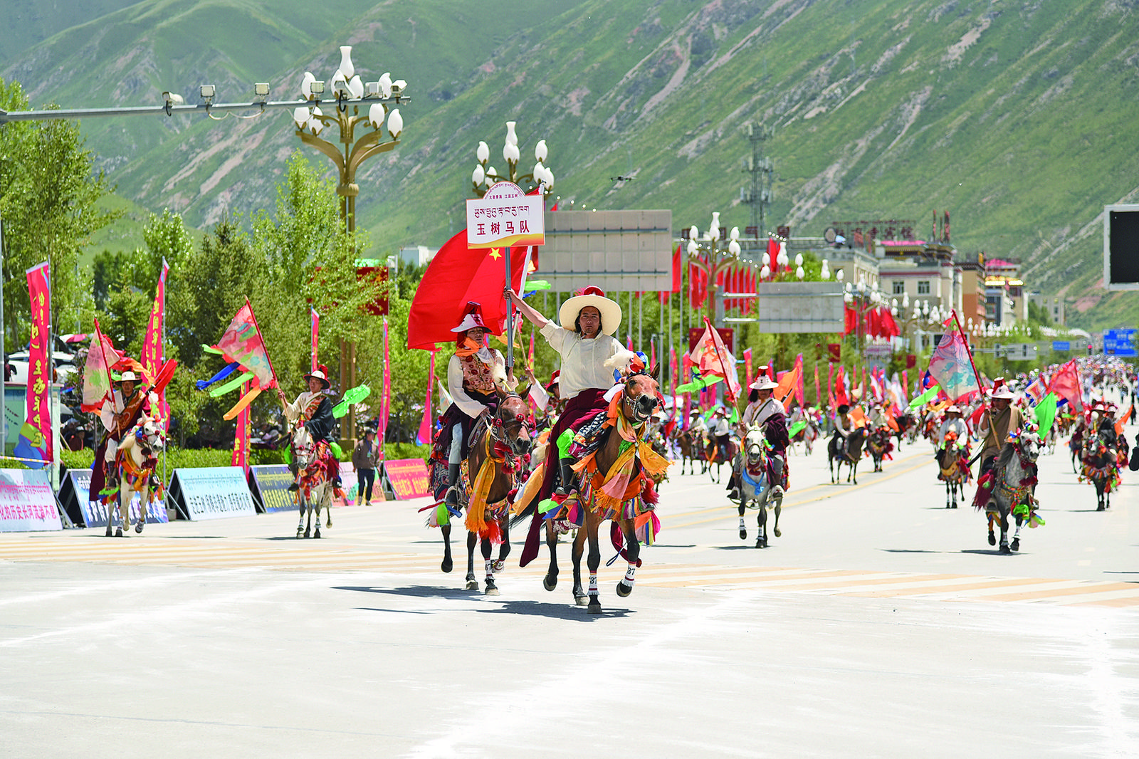 玉树马术方队登场。《青海日报》