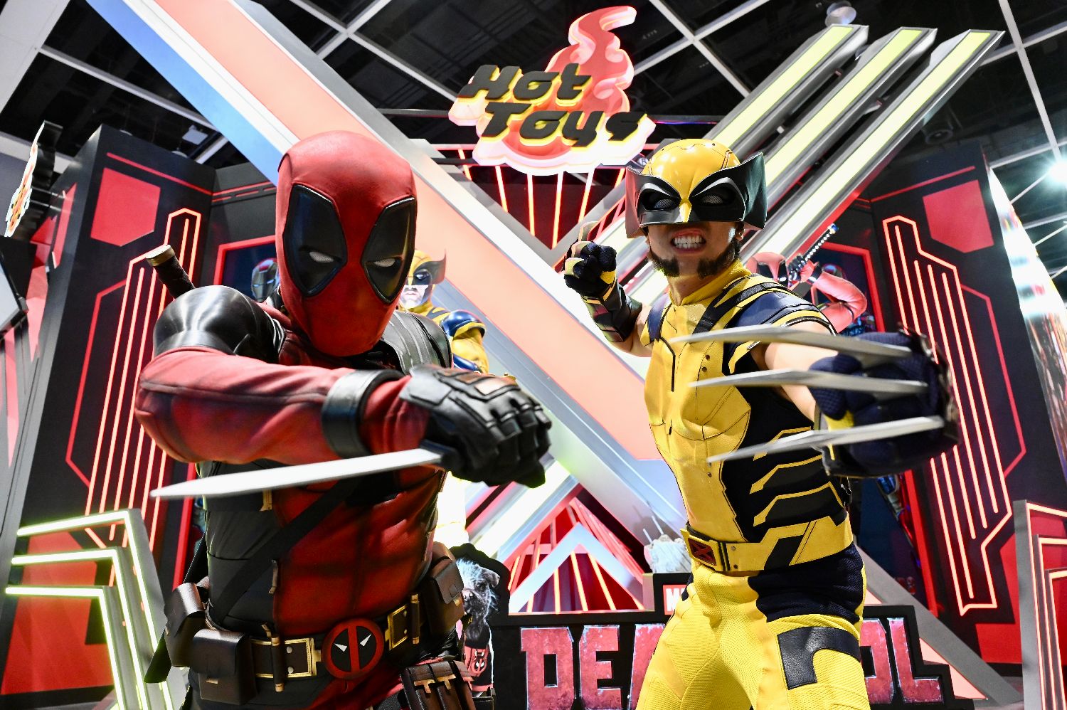 工作人员扮演漫威系列电影《死侍与金刚狼》中的角色。中新社