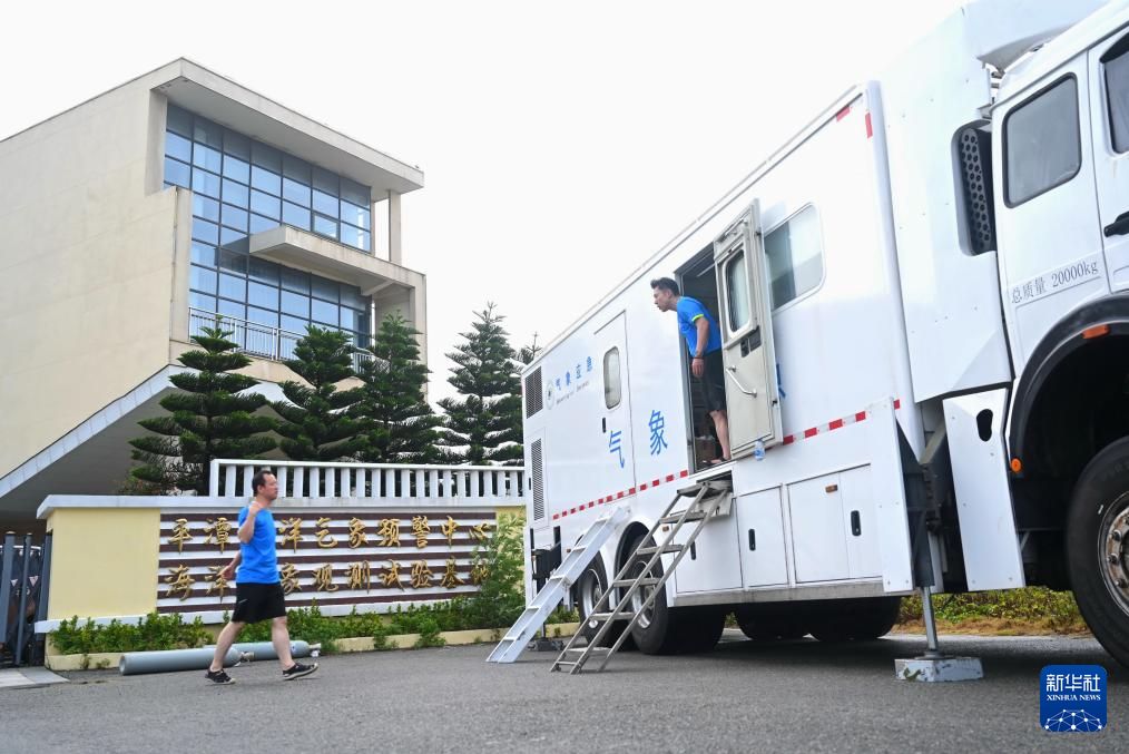 7月25日,中国气象局上海台风研究所台风探测团队人员在福建平潭对今年第3号台风“格美”开展联合外场观测试验。新华社