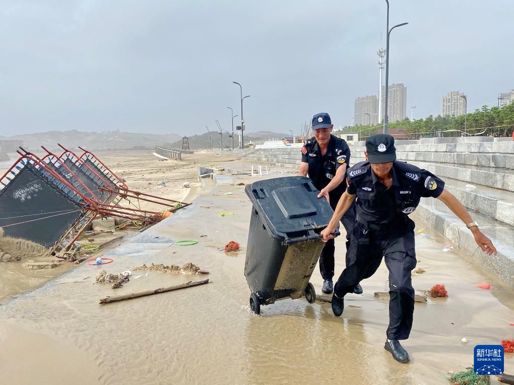 7月25日,安保工作人员在福建平潭的一处沙滩公园排除安全隐患。新华社