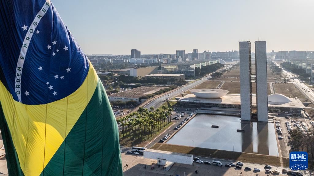 巴西利亚以其城市规划及城市建筑闻名世界。1956年,时任巴西总统儒塞利诺·库比契克决定迁都内陆。在不到4年的时间里,巴西高原之上便建起了一座别具一格的现代化城市。1960年4月21日,巴西正式迁都巴西利亚。巴西利亚于1987年被联合国教科文组织(UNESCO)列入世界文化遗产名录。图为2024年7月16日在巴西首都巴西利亚拍摄的国会大厦(无人机照片)。