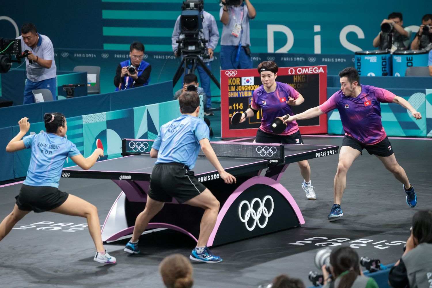 7月30日,巴黎奥运会乒乓球混合双打铜牌赛,中国香港组合黄镇廷/杜凯琹0:4不敌韩国组合林钟勋/申裕斌,无缘季军。香港中通社