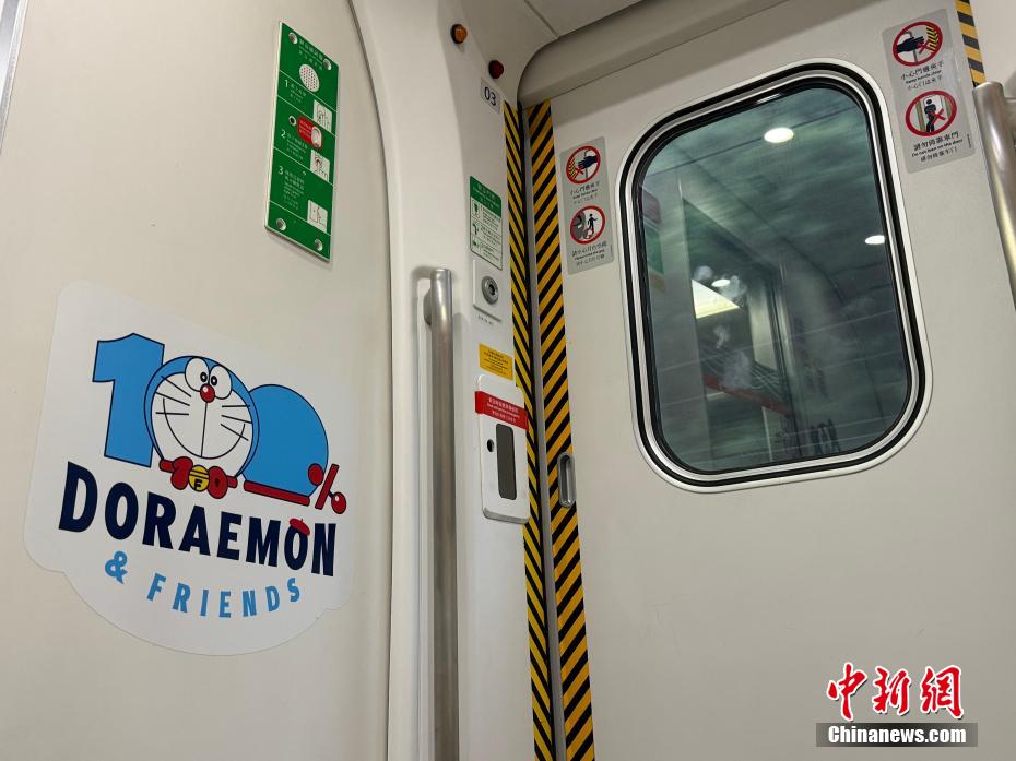 列车车门旁的“哆啦A梦”图案。中新网