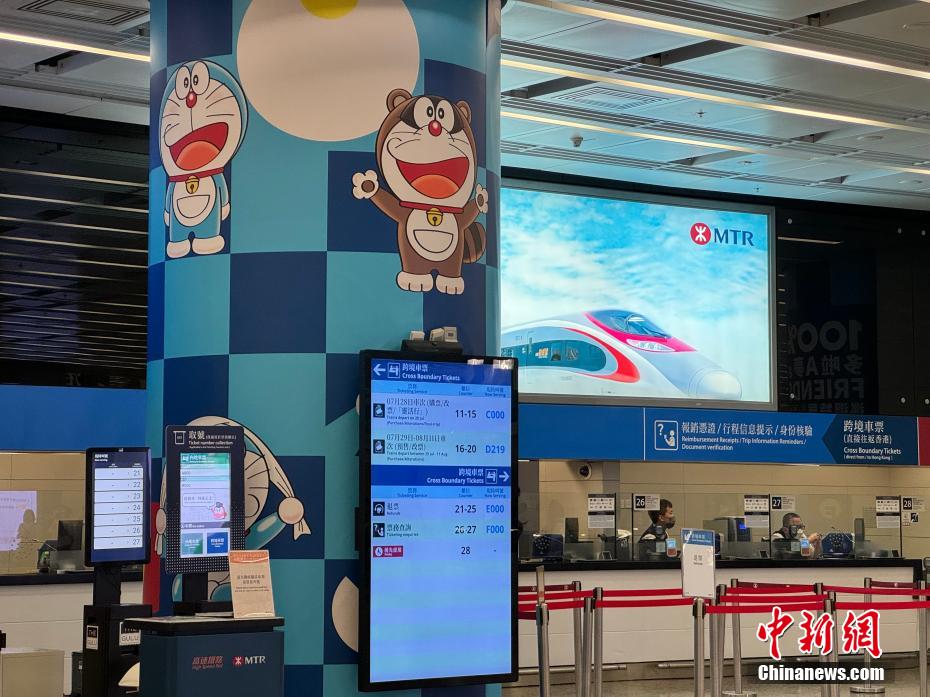香港西九龙站售票处的“哆啦A梦”装饰。中新网