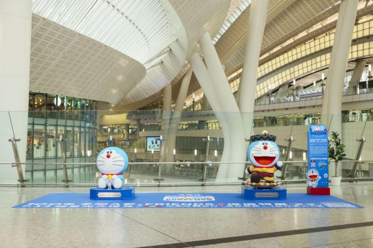 香港西九龙站内的“哆啦A梦”雕塑。中国日报网