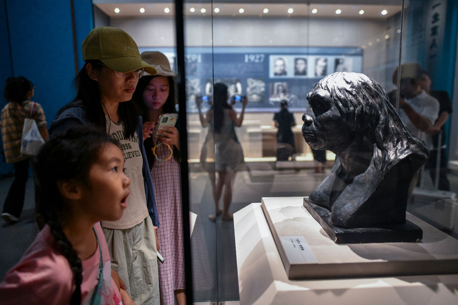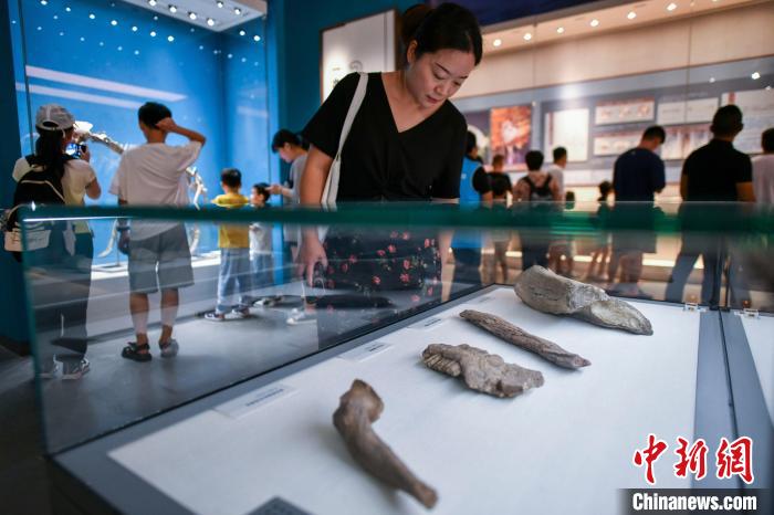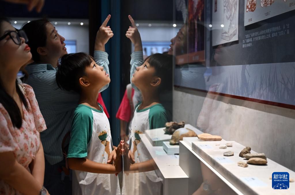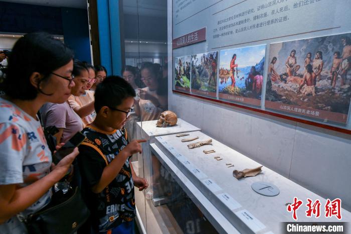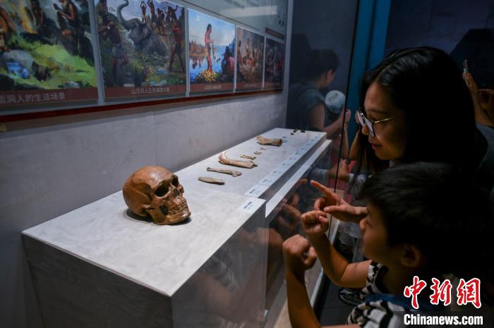 7月30日,山顶洞人头骨模型吸引参观者。中新网