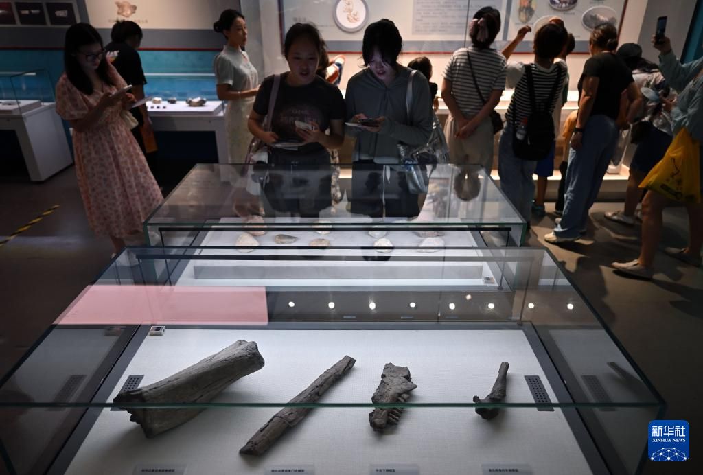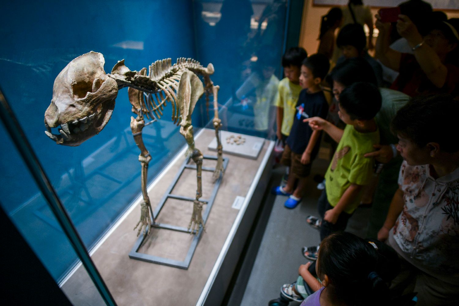 7月30日,“‘我’从远古走来——周口店遗址文化展”在位于海南海口的海南省博物馆开展。此次展览分为惊世发现、“北京人”、“山顶洞人”、其它化石地点、科学研究等七个部分,全面展示了周口店遗址的丰富内涵。其中,139件珍贵展品亮相,包括100件真品和39件模型,让观众近距离感受古人类的生活场景。图为展出的中国鬣狗完整骨架模型吸引参观者。中新社
