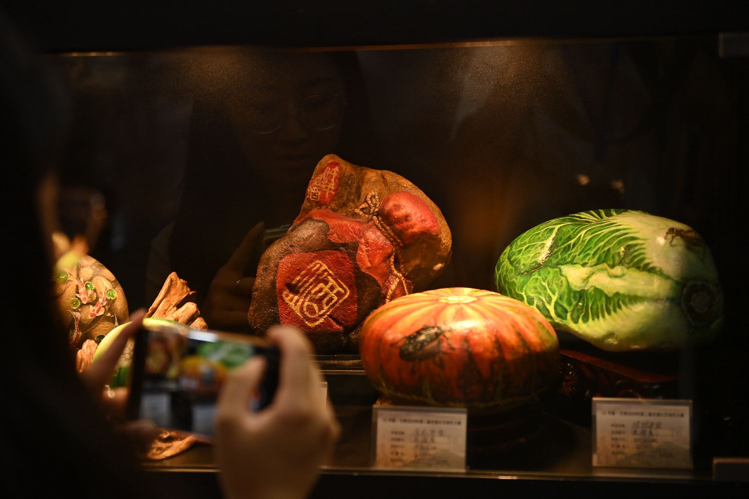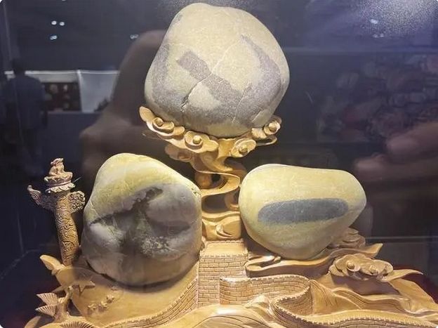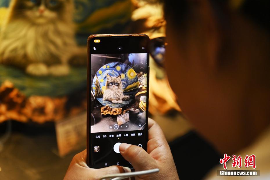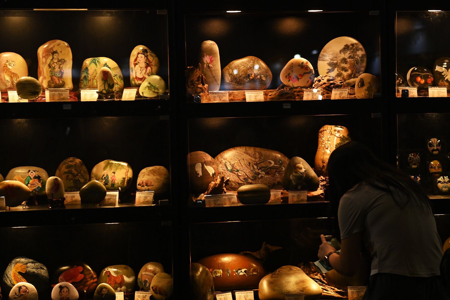 8月1日,以“文博丝路·盛世收藏”“天成大美·万域心声”为主题的2024第17届中国(兰州)艺术品收藏博览会暨丝绸之路国际赏石文化节在甘肃兰州开幕。展览分为“天地灵韵·造化人文”奇石展、“五彩禀赋·天地宠儿”嘉陵彩专展、“石上匠心·创美传承”石艺作品展、“明心见性·妙悟人生”禅石展等。图为参观者拍摄《陈酿老酒》等石艺作品。中新社